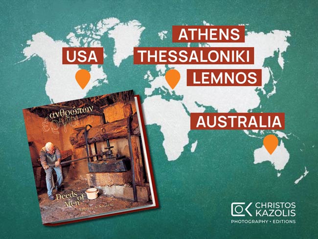 Το φωτογραφικό του υλικό εκτίθεται, μεταξύ άλλων, σε τρία πολυτελή λευκώματα: ΛΗΜΝΟΣ, εικόνες & φύση (1998), Ανθρώπων έργα (2006), ΛΗΜΝΟΣ, Θέα στο βόρειο Αιγαίο (2009), των εκδόσεών του, ονόματι Terra Lemnia. Πρωταρχικός του στόχος είναι η παρουσίαση του εξαιρετικού φυσικού πλούτου και του σπουδαίου –από αρχαιοτάτων χρόνων– πολιτισμού της Λήμνου, την οποία δικαίως εγκωμίαζε ο μεγάλος επικός ποιητής Όμηρος, χαρακτηρίζοντάς τη «την πιο αγαπημένη απ’ όλες τις στεριές».